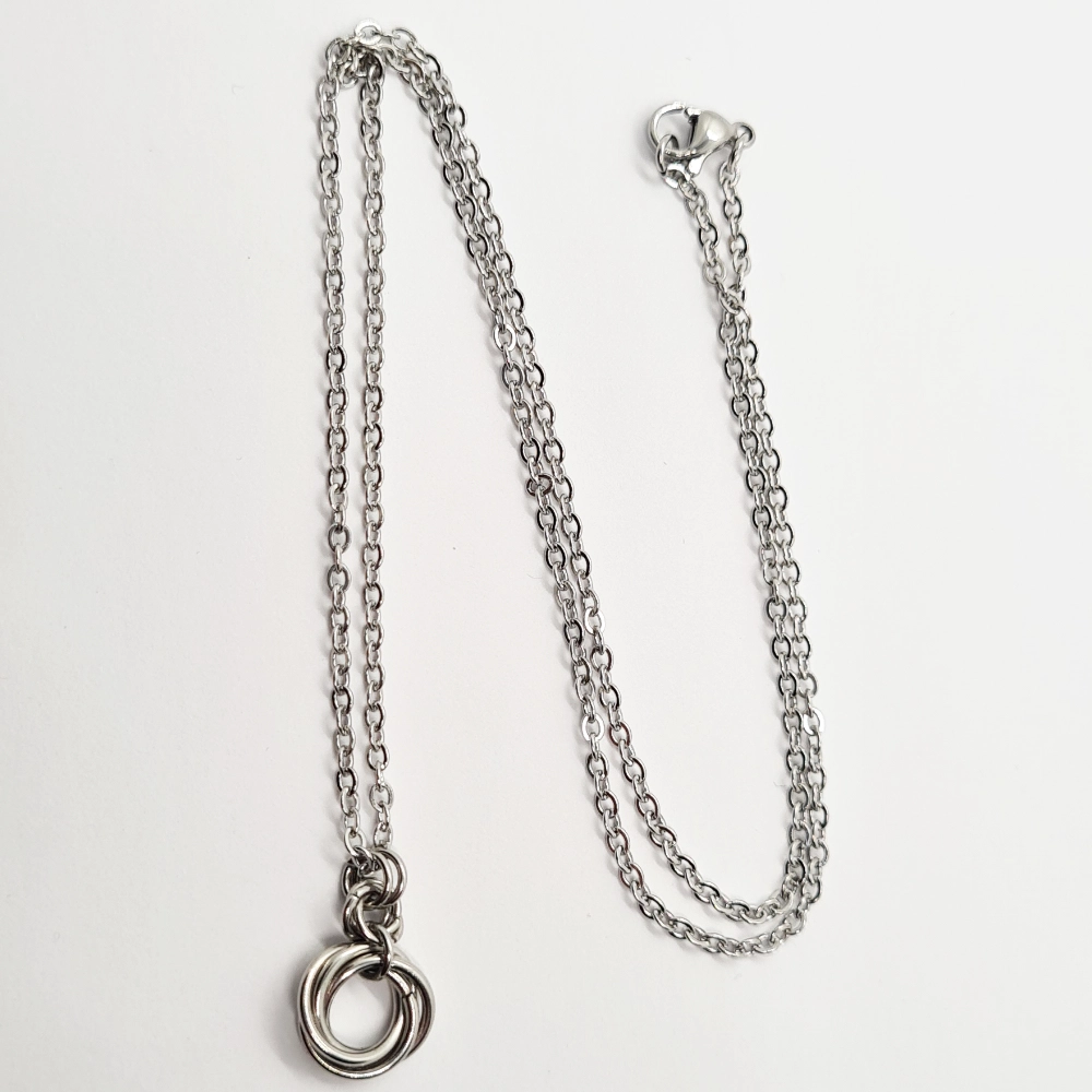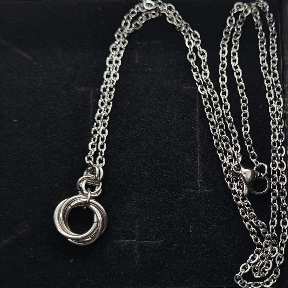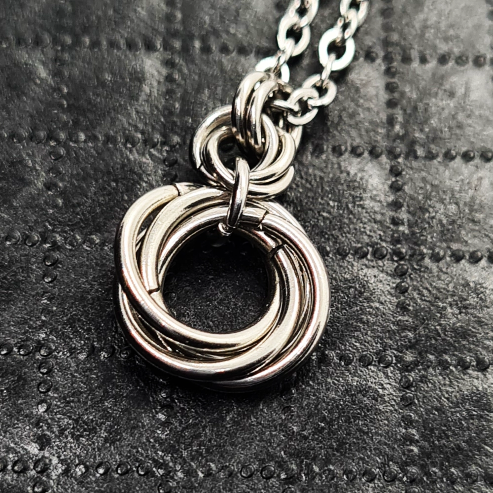 A medál chainmail technikával készült rozsdamentes acélból, tartós és mutatós kiegészítő.